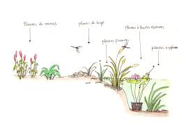 Les plantes à floraison décorative telles le populace des marais, le jonc, le myosotis des marais, ou encore les iris d'eau, doivent vivre simplement avec les pieds dans l'eau.